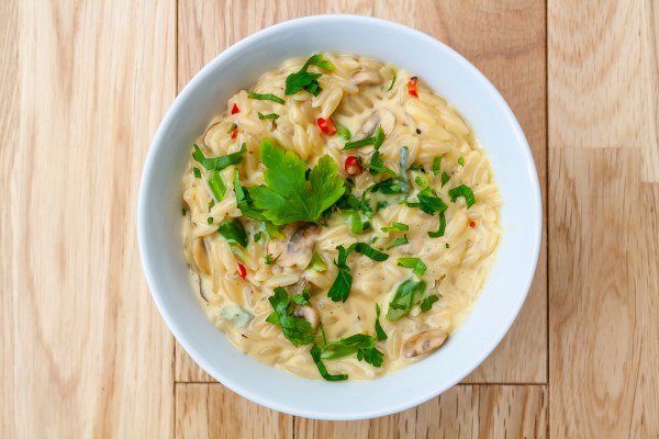 Chilli Cheese Orzo with Asparagus and Mushrooms